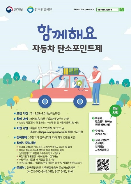 자동차 탄소포인트제는 생활 속 온실가스감축 활성화를 위해 가정, 상가 등 건물을 대상으로 시행하던 탄소포인트제를 자동차 분야로 확대한 제도다.