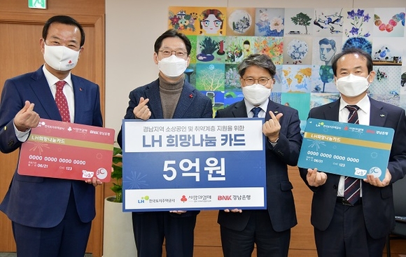 기탁식은 김경수 도지사와 장충모 LH 부사장, 강기철 경남도사회복지공동모금회장이 참석한 가운데 김 지사의 집무실에서 진행됐다.