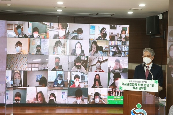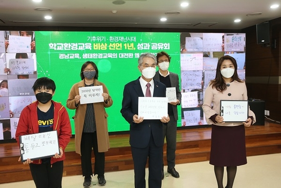 경남도교육청은 15일 도교육청 제2청사 대회의실에서 기후위기·환경재난시대 '학교환경교육 비상선언 1년, 성과공유회'를 열었다.