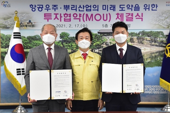 경남 진주시는 17일 시청 기업인의 방에서 ㈜스템, ㈜드림피에프와 160억원 규모의 투자협약(MOU)을 체결했다.