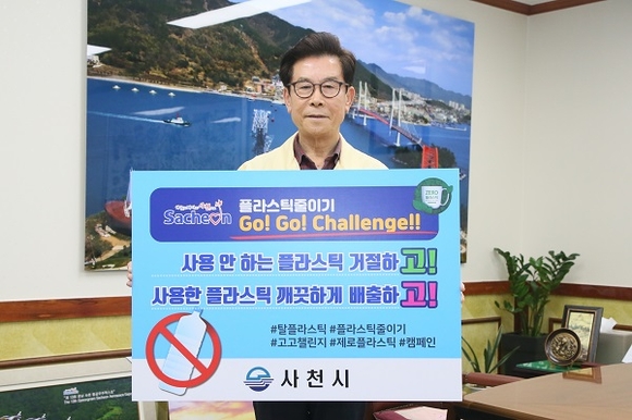 송도근 사천시장이 지난 22일 탈(脫) 플라스틱 사회 전환을 위한 생활 속 플라스틱 줄이기 캠페인 '고! 고! 챌린지'에 동참했다.