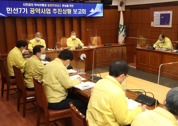 한편 이번 보고회에서 검토된 민선7기 공약사업 추진상황은 시민공약자문평가단 평가를 거쳐 밀양시 홈페이지에 공개될 예정이다.