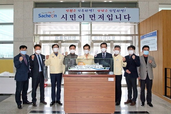 4일 사천시에 따르면 ㈜현성엠씨티가 사천시청을 방문해 사천~제주 간 카페리 '오션 비스타 제주호'에 대한 모형 전달식을 가졌다.