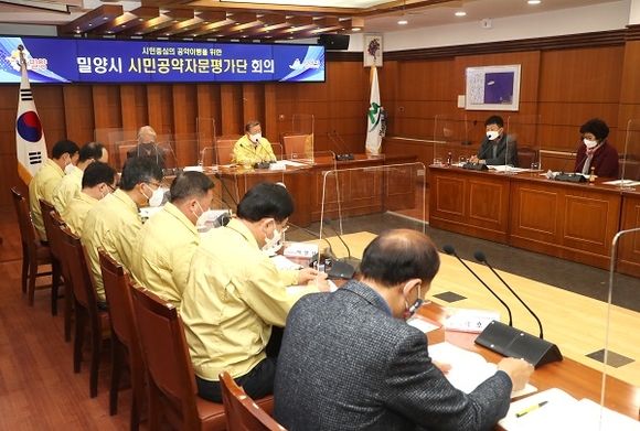 경남 밀양시는 8일 시청 소회의실에서 시민공약자문평가단 위원과 국·소장 등 20여명이 참석한 가운데 민선7기 공약사업 추진사항에 대한 평가단 회의를 가졌다.