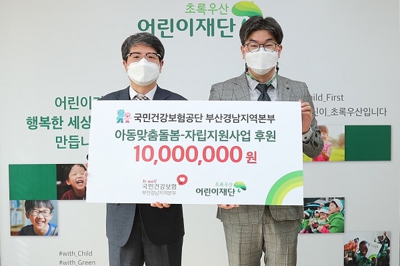 국민건강보험공단 부산경남지역본부는 소외 청소년 맞춤 돌봄서비스 사업을 발굴하고 지난 10일 초록우산 어린이재단 부산지역본부에서 기증식을 가졌다고 밝혔다.