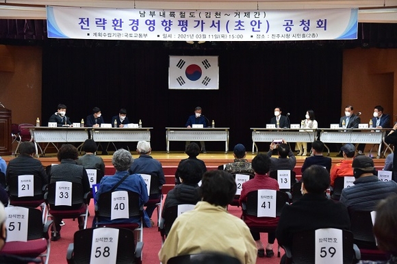 11일 오후 진주시청 시민홀에서 남부내륙고속철도(서부경남KTX) 전략환경영향평가서(초안) 공청회가 열렸다.