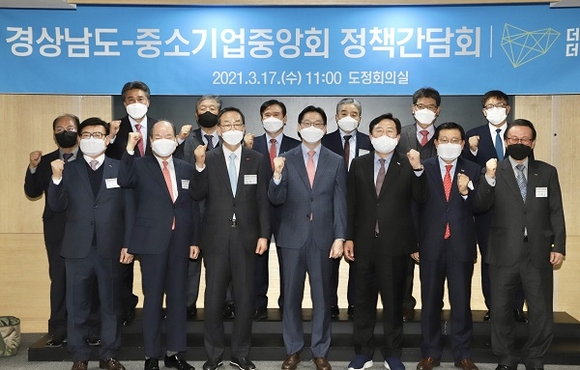 경남도가 17일 오전 도청에서 중소기업중앙회와 정책간담회를 열고 지역 중소기업의 목소리를 들었다.