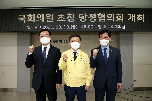 시는 지난 19일 시청에서 허성곤 시장과 민홍철·김정호 의원이 참석한 가운데 지역구 국회의원 초청 당정협의회를 열어 사업별 담당 실국소장의 2022년 국고신청 주요사업 24건, 주요 현안건의사업 14건에 대한 보고에 이어 추진방안을 논의했다.