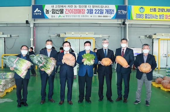 함양군에 따르면 22일 오후 1시 20분 함양군산림조합 임산물유통센터에서 서춘수 함양군수를 비롯한 기관단체장, 농·임업인 등 100여명이 참여한 가운데 코로나19 방역지침을 준수하며 농·임산물 간이 경매장 개장식이 열렸다.