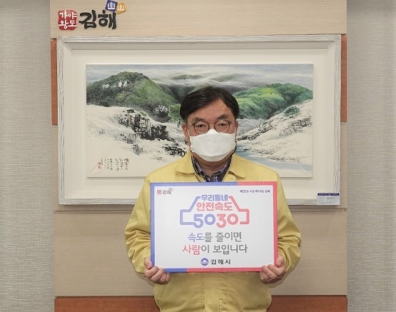강덕출 김해시 부시장이 23일 '안전속도 5030 릴레이 홍보' 캠페인에 동참했다.