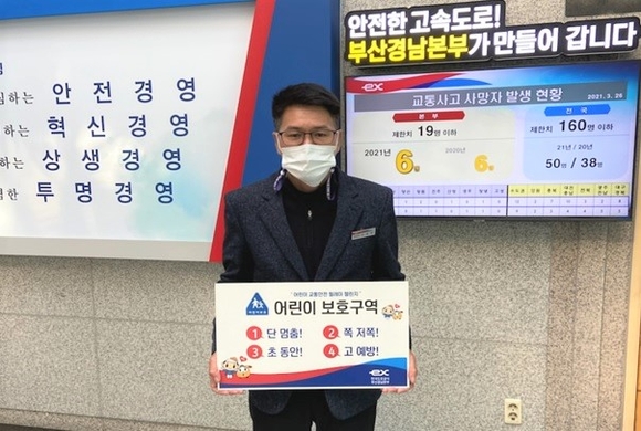 서경석 한국도로공사 부산경남본부장이 25일 어린이 보호 최우선 문화 정착을 위한 '어린이 교통안전 릴레이 챌린지'에 동참했다.
