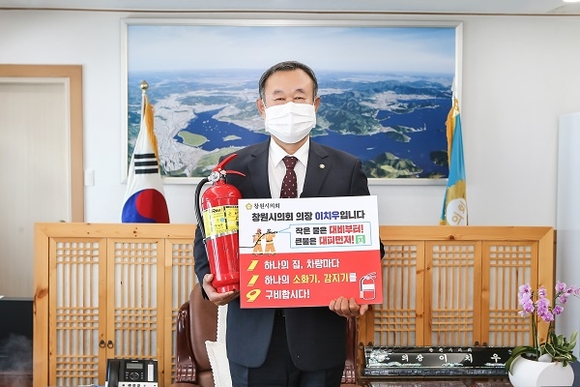 창원시의회는 이치우 의장이 주택 및 차량 화재로 인한 인명피해를 줄이기 위해 각 가정과 차량에 소화기와 감지기 구비를 권장하는 '화재안전 119 릴레이 챌린지'에 동참했다고 1일 밝혔다.