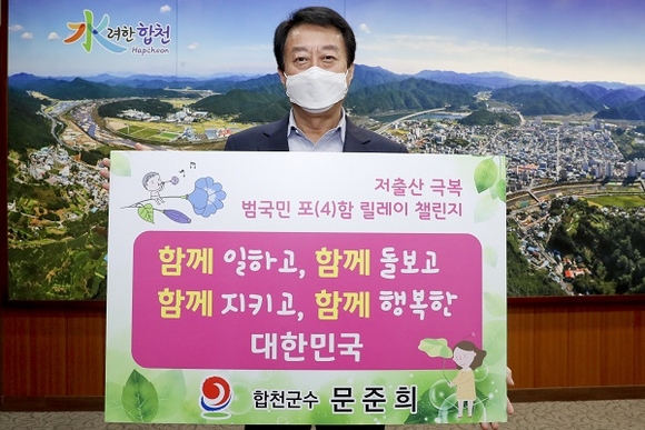 문준희 합천군수가 최근 저출산 위기의 심각성을 깨닫고 함께 극복하고자 '저출산 극복 함께해요! 범국민 포(4)함 릴레이 챌린지'에 동참했다.
