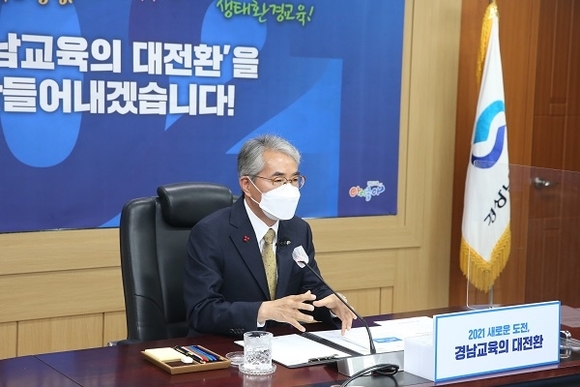 경남도교육청이 올해 안정적 교육과정 운영과 코로나19 이후 경남 미래교육의 방향에 대해 소통과 공감으로 경남교육의 대전환을 함께 만들어가기 위해 2021년 지역교육업무협의회를 시작한다.
