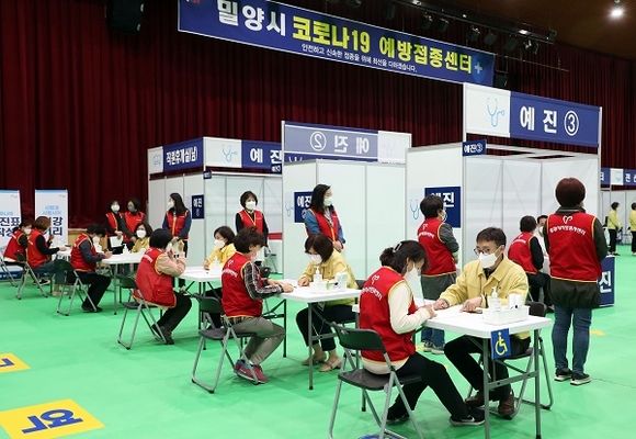 이날 오전 9시 30분부터 진행된 모의훈련은 밀양시보건소, 군·경찰·소방인력, 가상 접종자 30명 등 60여명이 참여한 가운데 2시간 30분 동안 진행됐다.