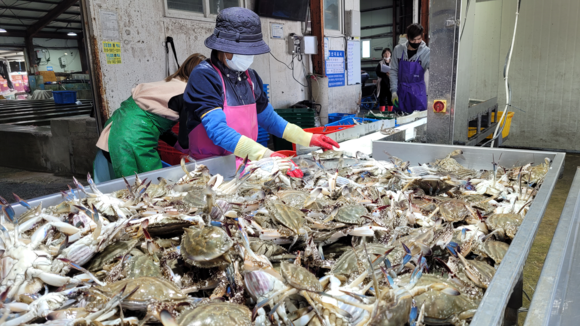 매일 13~15t 위판, 적조 없는 바다에서 통발로 잡아 올려 전국에서 인기 쇄도