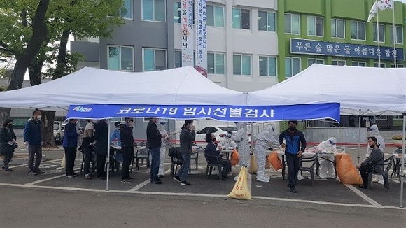 읍사무소에 위치한 임시 선별진료소에서는 특별한 증상이나 확진자와 접촉이 없더라도 코로나19 진단검사를 받을 수 있다.