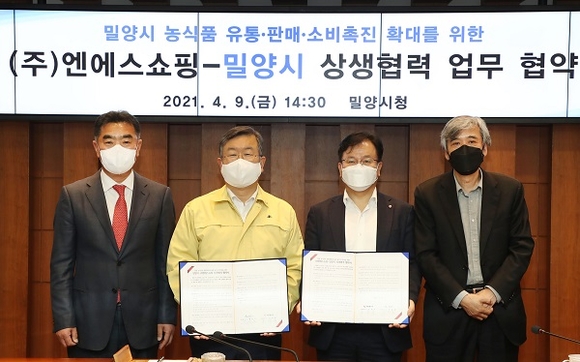 경남 밀양시는 9일 시청 소회의실에서 국내 농특산물 쇼핑 시장을 선도하고 있는 NS홈쇼핑과 밀양 농식품의 유통확대와 농촌 삶의 질 향상을 위한 업무협약을 체결했다.