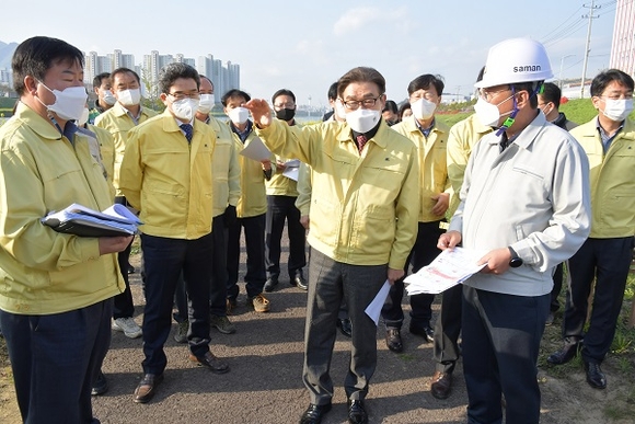 경남 양산시는 시장, 부시장을 비롯한 국·소장이 주축으로 구성된 책임관 회의를 기존 사무실에서 개최되는 관행을 탈피해 9일 국지도60호선(양산신기~유산) 양산대교 재가설 공사 현장 지도점검에 나섰다.