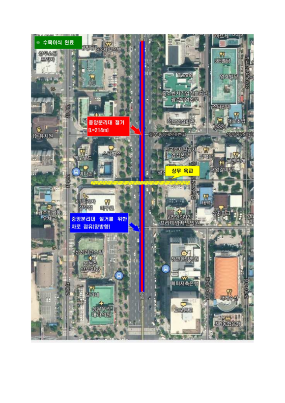 19일부터 일부 구간 중앙분리대 철거 후 차선전환