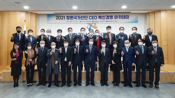 한국산업단지공단 경남지역본부는 14일 청사 6층에서 '2021 창원국가산단 CEO 혁신경영 아카데미' 개강식을 가졌다.