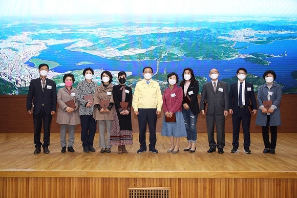 수여식은 지난 1분기 동안 지역사회와 시정발전을 위해 공헌한 시민들과 단체 90여 명을 선정, 코로나19 방역수칙 준수를 위해 60여 명 규모로 축소, 표창패 전수만을 하는 방식으로 진행됐다.