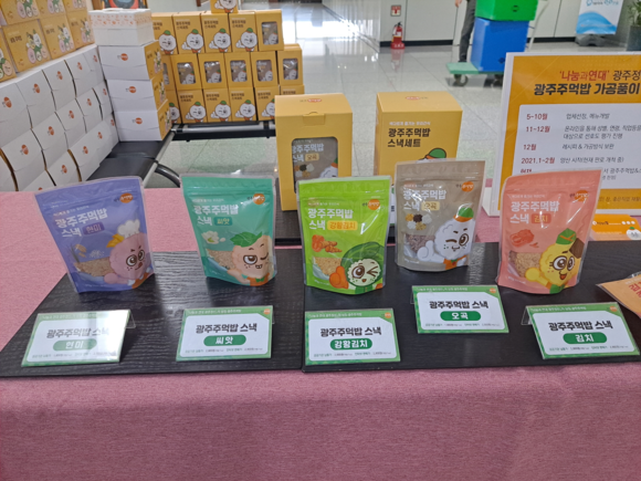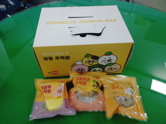 이번에 출시된 광주주먹밥은 간편하고 건강한 웰빙 음식으로, ‘오곡주먹밥’, ‘김치치즈주먹밥’, ‘떡갈비주먹밥’ 등 냉동판매형 3종과 주먹밥을 얇고 납작하게 눌러 스낵형으로 만든 ‘담백한 현미’, ‘영양만점 오곡’, ‘고소한 씨앗’, ‘감칠맛 김치’, ‘매력만점 강황김치’ 5종 등 총 8개다.