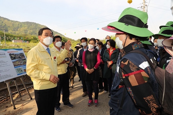 허성무 창원시장은 지난 20일 소계동 (가칭)천주산 소계 플라워랜드 조성 사업 예정지를 방문, 4不 혁신 실현을 위해 본격적인 현장 점검에 나섰다.