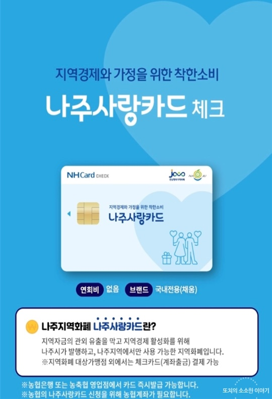 나주사랑상품권은 NH농협은행 나주시지부와 지역농협, 신협, 새마을금고, 광주은행 등 지정 금융기관 54개소에서 월 70만원 한도 내 구매할 수 있다.