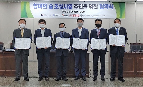 이번 협약은 기후변화 대응 및 쾌적한 대기환경 조성 등을 위해 6개 기관이 상호 협력하고자 마련된 것으로, 향후 숲 조성사업을 위한 시민참여, 환경캠페인, 나무 식재 등 관련 사항을 협업을 통해 추진, 올해 10월 첫 '참여의 숲' 시범사업을 시행할 예정이다.