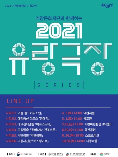 거창문화재단이 한국문화예술회관연합회의 '2021년 지역문화예술회관 문화가 있는 날' 공연산책 공모사업에 선정돼 2600만원의 국비를 확보하고, '2021 유랑극장' 시리즈를 선보이고 있다.