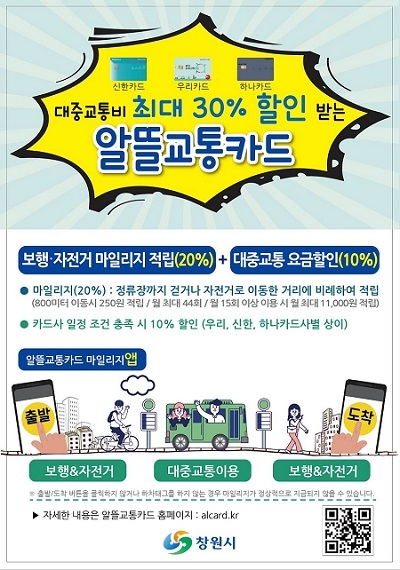 경남 창원시는 대중교통을 이용하는 시민들의 교통비 부담을 완화하고 대중교통 활성화를 위해 알뜰교통카드 사업을 작년부터 시행하고 있다고 27일 밝혔다.