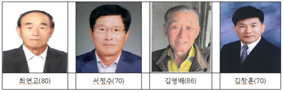 함평군은 28일 “올해 함평 군민의 상 수상자로 ▲지역개발상 최연고(남, 80세), 서정수(남, 70세) ▲ 도의상 김영배(남, 86세) ▲ 교육문화상 김창훈(남, 70세)씨가 선정됐다”고 밝혔다.