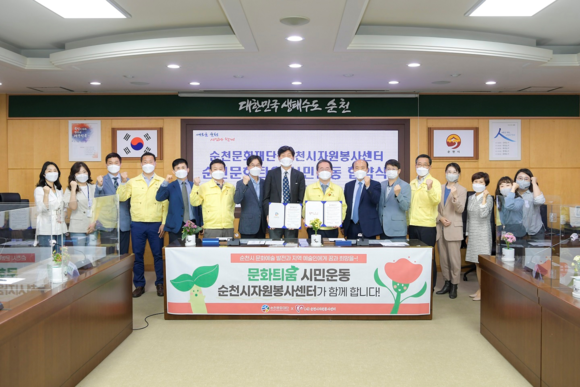 순천문화재단(이사장 허석)은 29일 순천시청 소회의실에서 (사)순천시자원봉사센터(이사장 이금옥)와 ‘순천문화틔움’ 시민운동 업무협약을 체결했다.