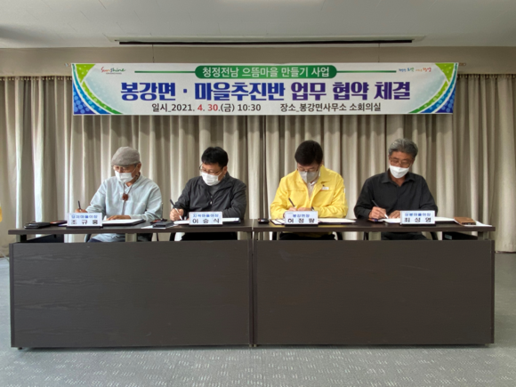 광양시 봉강면과 마을추진반은 ‘청정전남 으뜸마을’ 만들기 사업을 위해 30일 봉강면사무소에서 업무 체결 협약식을 가졌다.