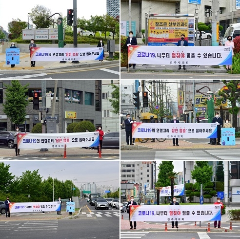 경남 진주시의 코로나19 대응 '진주시민 잠깐 멈춤 캠페인'에 이번에는 시의원들이 총출동했다.