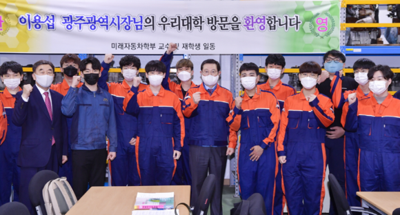 이 시장은 미래자동차학부 2학년생들과 가진 간담회에서 “조선이공대는 186명 모집에 1만2600여 명이 몰린 광주글로벌모터스 신입사원 채용에서 톡톡한 성과를 내는 등 전문교육 시스템이 잘 구축된 것으로 알고 있다”며 “앞으로도 지역사회 발전을 위해 많은 일을 해주길 바란다”고 강조했다.