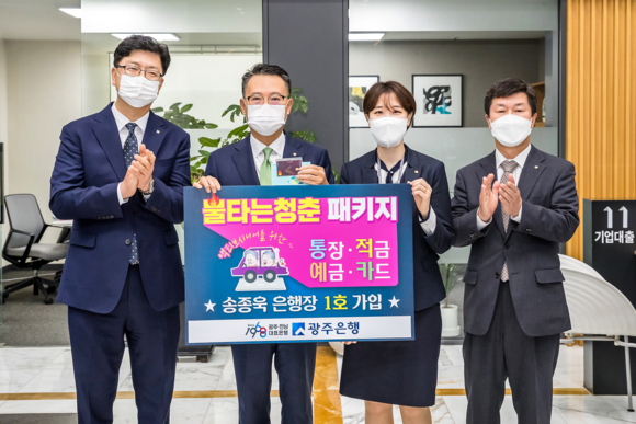 ‘불타는 청춘’ 패키지 상품 출시를 기념해 1호 가입자로 나선 송종욱 광주은행장은 “시니어 고객님들의 라이프스타일을 반영한 맞춤상품 출시로 고객님의 제2의 청춘을 광주은행이 함께 동행하며 응원하고자 패키지 상품을 출시하게 되었다”며, “유스 고객부터 시니어 고객까지 아우르는 다양한 금융서비스 제공을 통해 고객님께 신뢰받으며 지속가능한 100년 은행으로 성장해나가겠다”고 말했다.