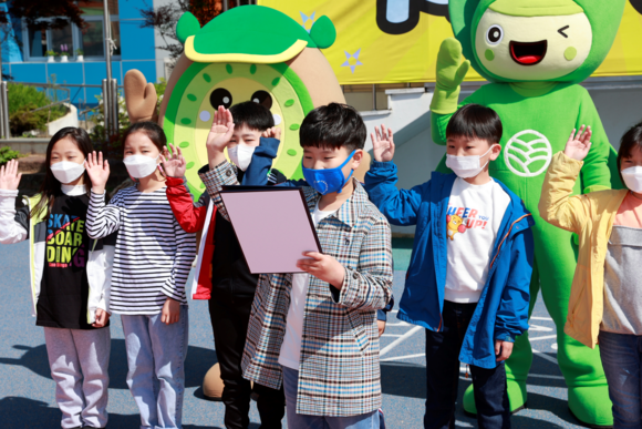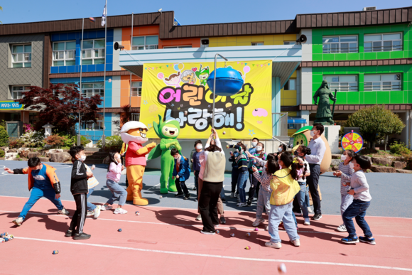 보성군 특산품 캐릭터 BS삼총사가 지난 3일 보성초등학교에서 어린이날을 맞아 학생들과 소규모 운동회를 열었다.