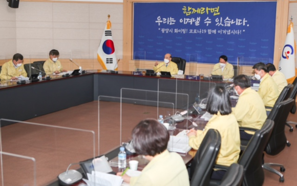 광양시는 지난 3일 시청 상황실에서 부시장, 국ㆍ소장 등으로 참석인원을 최소화한 가운데 5월 확대간부회의를 갖고 5월 중 추진해야 할 당면 현안업무를 공유하고 협의했다고 밝혔다.