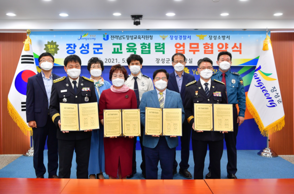 장성군이 지역 내 유관기관과 교육 발전을 위한 업무협약을 체결했다. 군은 4일 군청 상황실에서 장성교육지원청, 장성경찰서, 장성소방서와 협약식을 가졌다. 4개 유관기관은 향후, 지역의 교육 현안 해결과 인재 육성을 위해 유기적인 협력을 이어갈 방침이다.