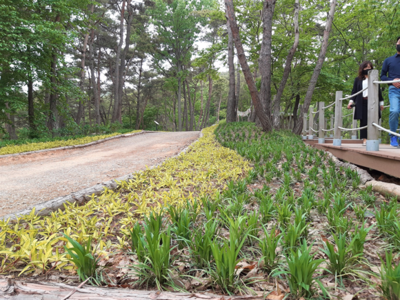 옐로우출렁다리 인근에 대사초 골든라이트, 맥문동 등 식재