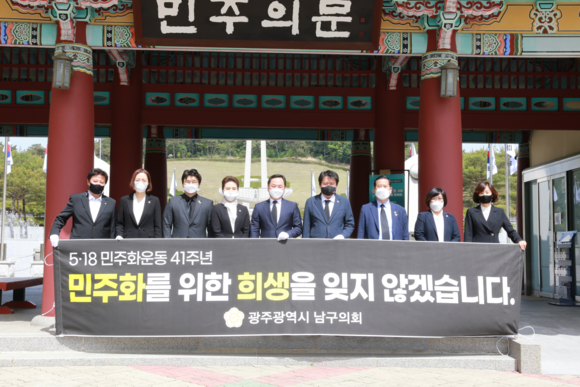 광주 남구의회(의장 박희율)가 제41주년 5.18민주화운동 기념일을 맞아 6일 광주 국립5·18민주묘지를 찾아 합동참배를 했다. 6일 남구의회에 따르면 이번 참배는 5.18민중항쟁의 숭고한 희생정신을 기리고 민주ㆍ정의ㆍ인권존중의 정신을 계승 발전시키는데 그 참뜻이 있다.