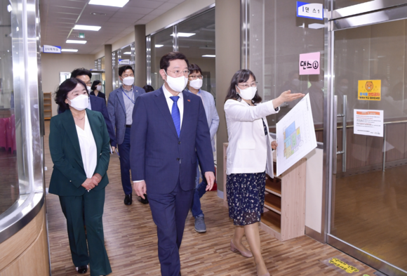 이용섭 광주광역시장은 6일 ‘코로나19 극복을 위한 청년·청소년 특별주간’ 행사의 하나로 위기청소년 지원시설 사업 현장을 방문해 청소년단체, 청소년지도사들과 정담회를 갖고 애로사항을 청취했다.