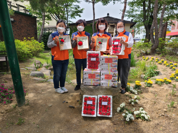 어버이날을 맞아 담양지역 곳곳에서 어르신들을 위해 카네이션을 전달하며 감사와 사랑을 전하고 있다.
