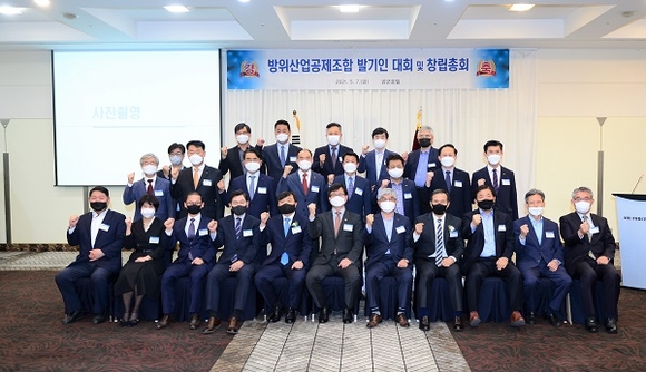 방위산업공제조합 설립추진위원회는 7일 서울 공군회관 사파이어홀에서 130개사를 대표해 40여 개사의 조합원을 비롯한 관계자들이 참석한 가운데 창립총회를 열고 공식적인 출범을 선포했다.