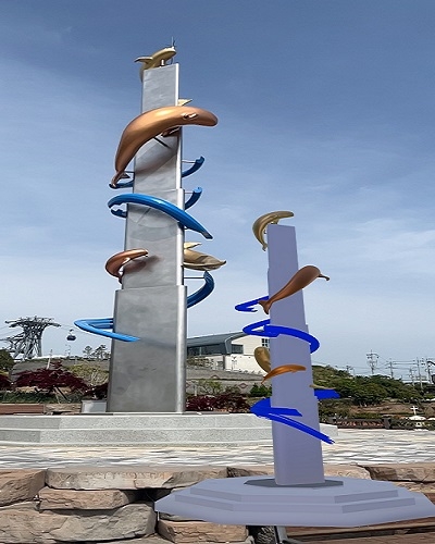 이 작품은 상괭이 3마리가 수면 위로 모습을 드러내며 활발하게 뛰노는 모습을 형상화했으며, 분수기능 추가로 단순한 조형물이 아니라 자연과 어우러진 상괭이의 자연스러운 모습을 표현했다.
