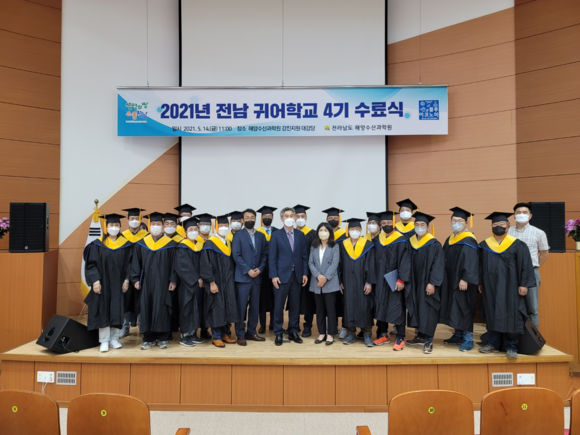 전라남도해양수산과학원은 14일 강진지원에서 5주간의 교육과정을 마치고 ‘전남 귀어학교 4기 과정’ 수료식을 개최했다.