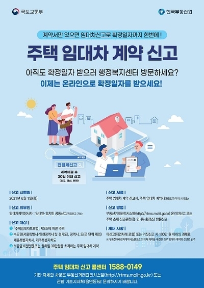 새 제도 시행에 따른 시민들의 적응기간 등을 고려해 시행일로부터 1년 동안 계도기간을 둔다. 읍·면·동 행정복지센터 통합민원창구 방문신고 또는 부동산거래관리시스템을 통해 온라인으로도 신고할 수 있으며 임대차 신고 시 확정일자가 자동으로 부여돼 편리하다.