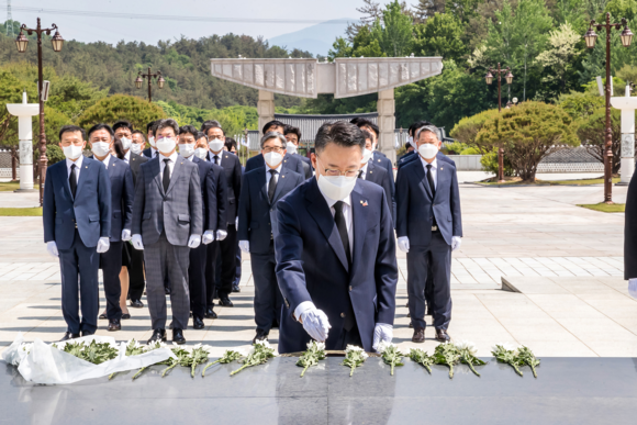 송종욱 광주은행장과 임직원은 5·18 광주민주화운동 41주년을 맞아 국립5·18민주묘지를 참배하며 민주영령들을 추모하고, 민주화운동의 숭고한 희생정신을 기렸다.